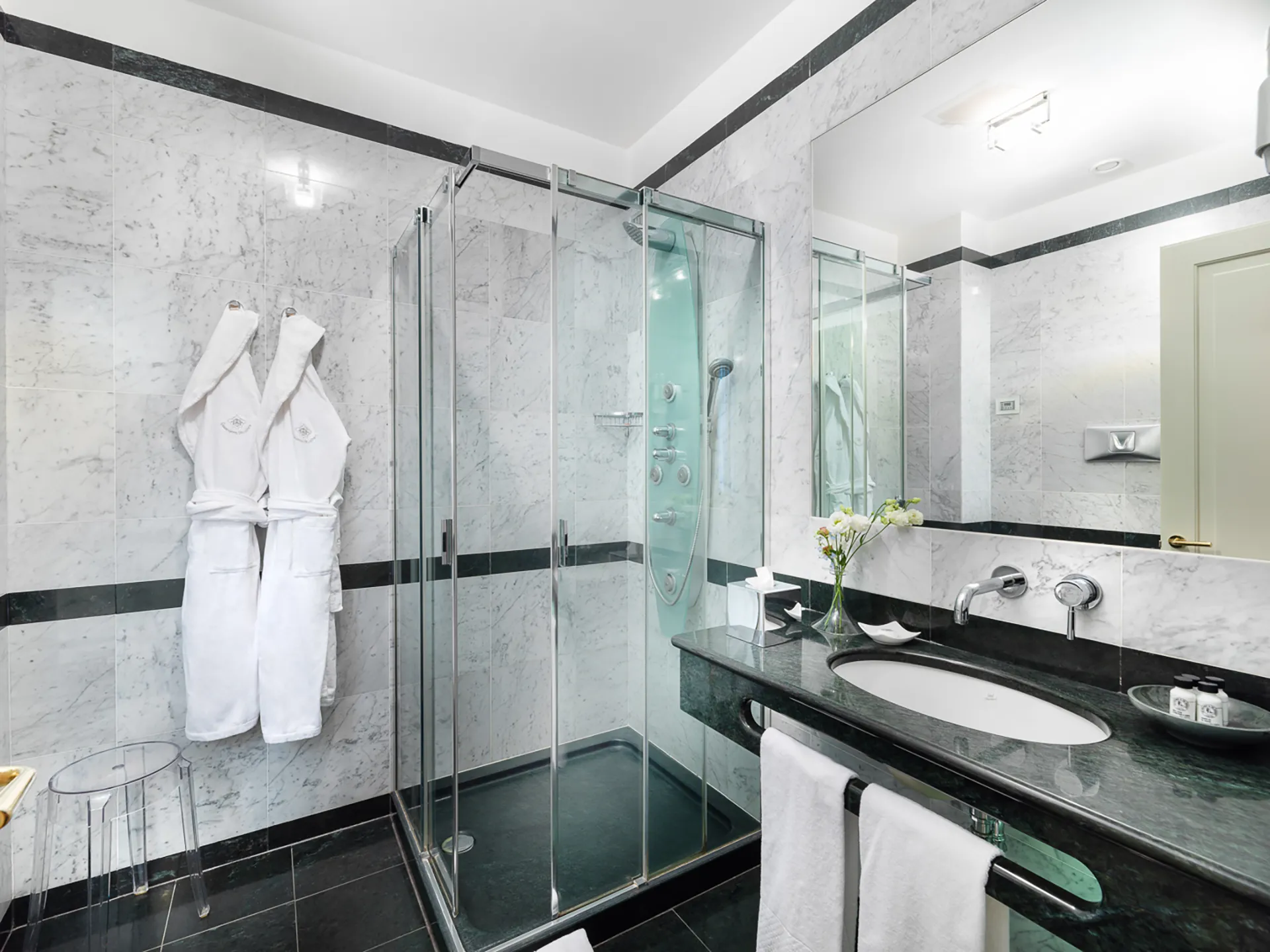 Accoglienti e raffinate, le nostre camere Classic offrono un’atmosfera calda e senza tempo grazie all’arredamento in stile classico. Con una superficie di 20 mq, dispongono di un bagno privato in marmo, completo di set cortesia e tutti i comfort.