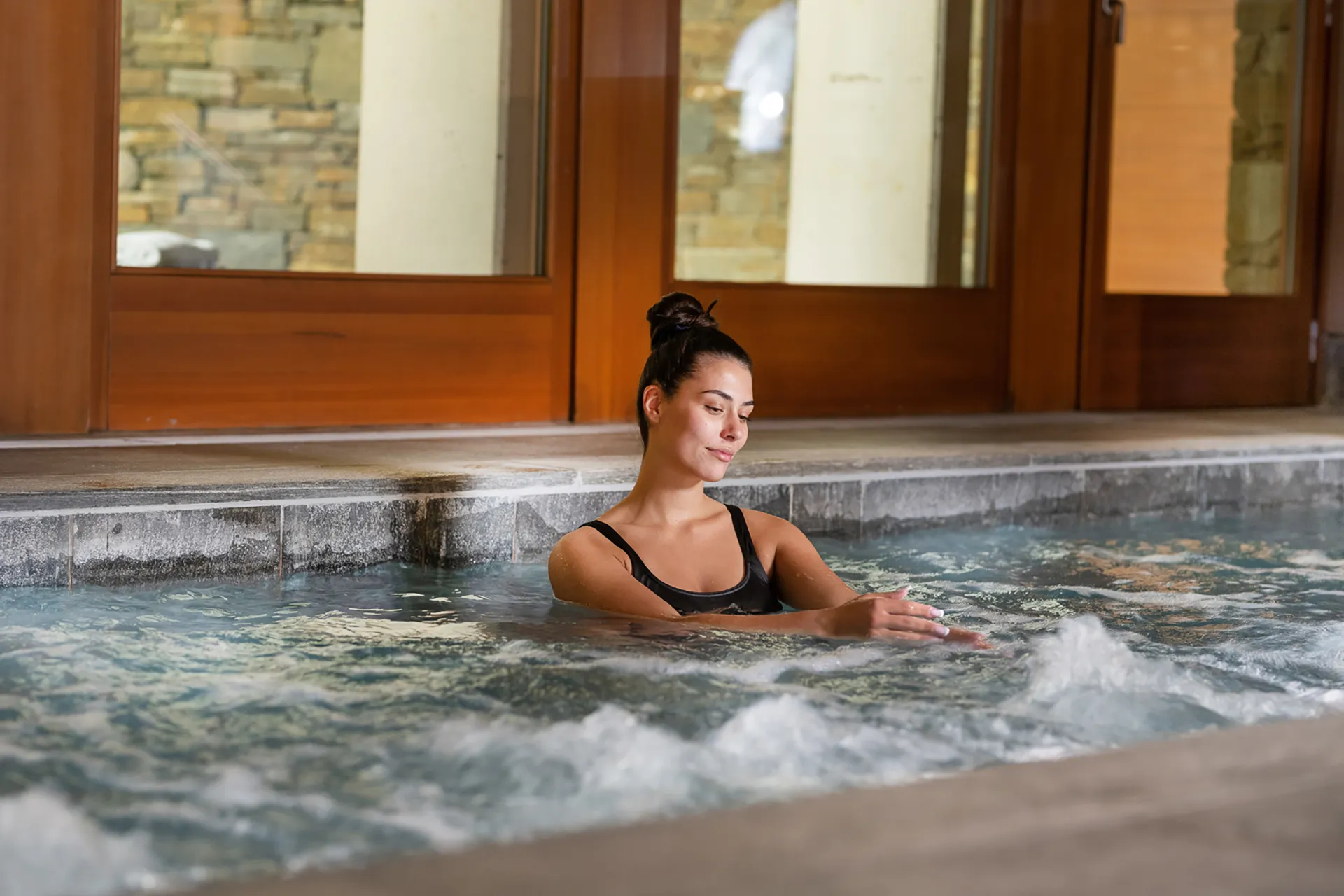 Una grande vasca idromassaggio, bagni di vapore, doccia emozionale e sauna per rigenerare corpo e mente e concludere il vostro percorso abbandonandovi al più completo relax.